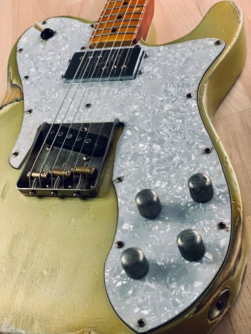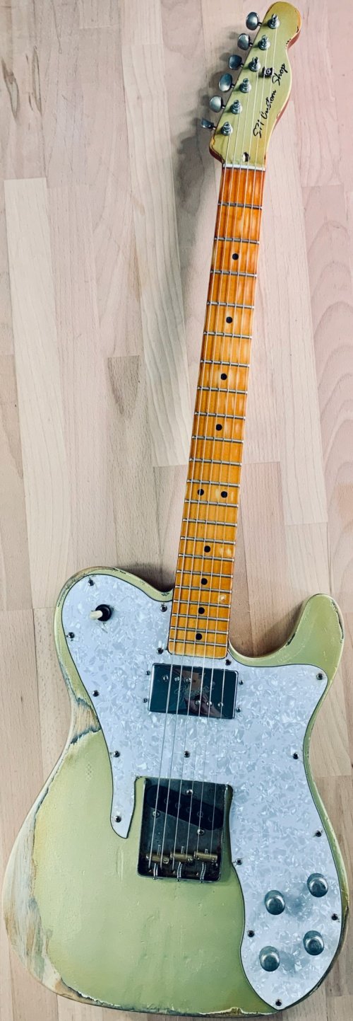 Superb and unique Custom Shop TL with a Swamp Ash body made in UK by luthier Heavily-Reliced in Surf Green with an all maple neck both finished and aged in 100% Nitrocellulose.