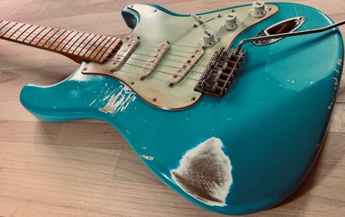 Fender hardtail bridge, Kluson deluxe tuners, Gotoh neck plate & Straps.