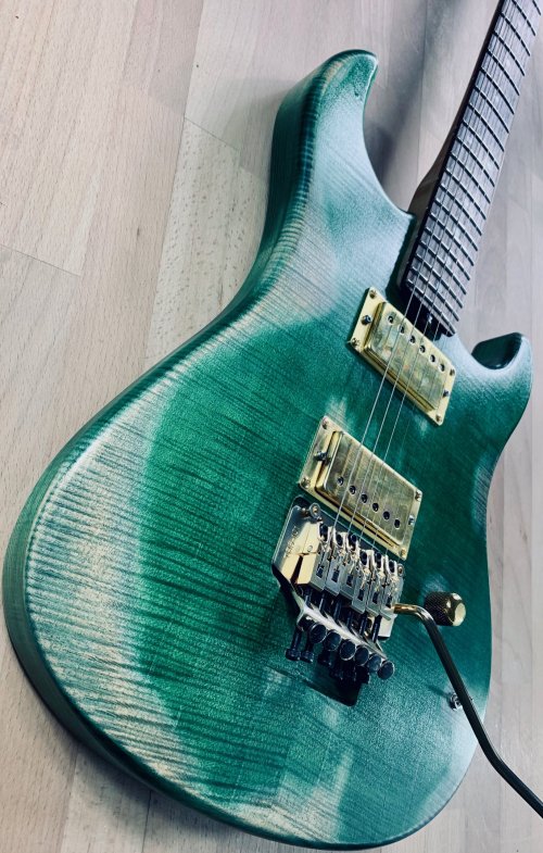 Handwound Humbuckers, PAF 50’s replica. Bourns Audio Pro USA pots and PIO vintage capacitor, 3-way switch Oak Grigsby. Jack out made in Italy.